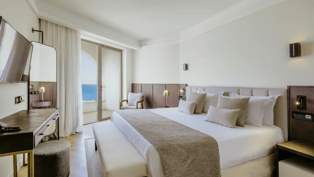Families come in all shapes and sizes, and Golden Coast caters to them effortlessly. Its room selection includes inland-view rooms for budget-friendly stays, marina-view rooms with charming scenery, and sea-facing options that open to the Aegean’s shimmering blues. Many guests looking for 4 star hotels in Protaras choose Golden Coast specifically for its family rooms, which include partitioned sleeping areas — a small but important detail that allows parents and children to share a space while maintaining privacy.
